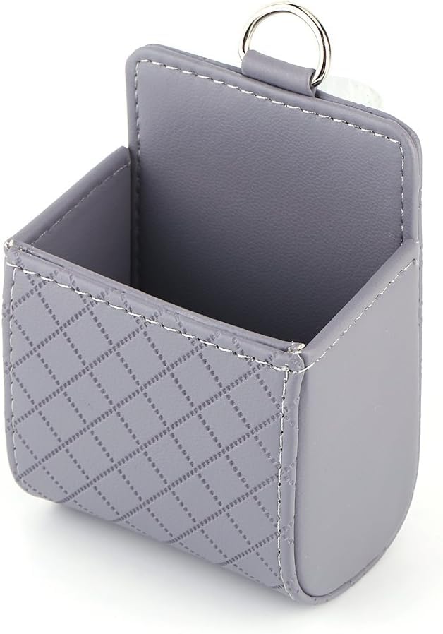 Generic - حامل موبايل يثبت بفتحة منظم تهوية السيارة بحقيبة تخزين عالمية الهاتف صندوق حقيبة جيب مع خطاف- رمادي - sa car