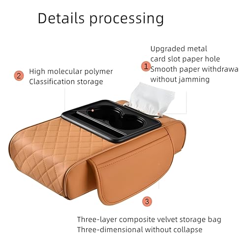 - Equipped with two cup holders, a mobile phone slot, tissue box compartment, and side pockets, this multifunctional design caters to all your essential storage needs, elevating your driving experience with practical features in a sleek package.