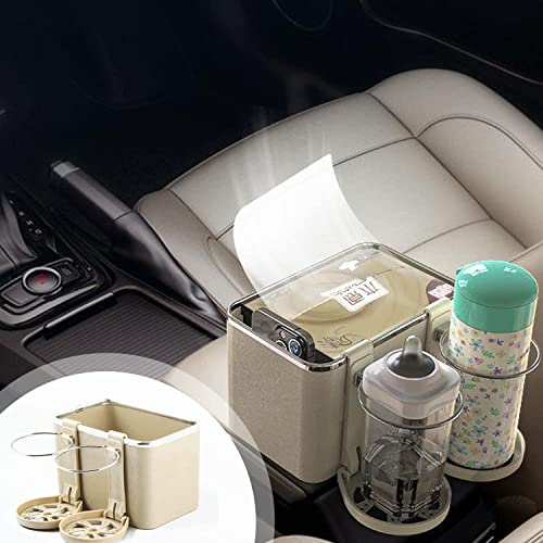 Generic - صندوق تخزين متعدد الوظائف قابل للطي لمسند ذراع السيارة بحامل أكواب ماء يمكنك تركيبه بنفسك، منظم مقعد وحدة التحكم المركزية للسيارة لكوب الماء والمناديل الورقية والموبايلات والمفاتيح (بيج)