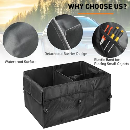 - 【Organization Helper】Large volume car trunk organiser has multi-functional partitions for efficient storage and easy access. Detachable barrier design for adjustable storage, non-slip boot maintenance bag can keep items secure and organized.