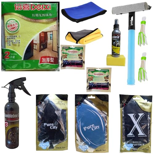 - مجموعة كاملة: تتضمن عبوة العناية بالسيارة المكونة من 13 قطعة الأوراق المعطرة والمنظفات والمساحات والفرش والمناشف المصنوعة من المايكروفايبر لصيانة شاملة للسيارة.
