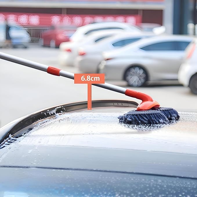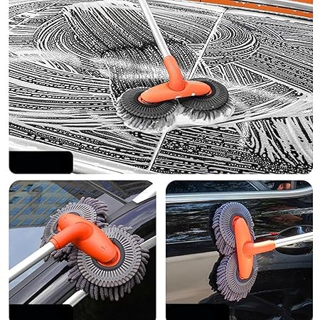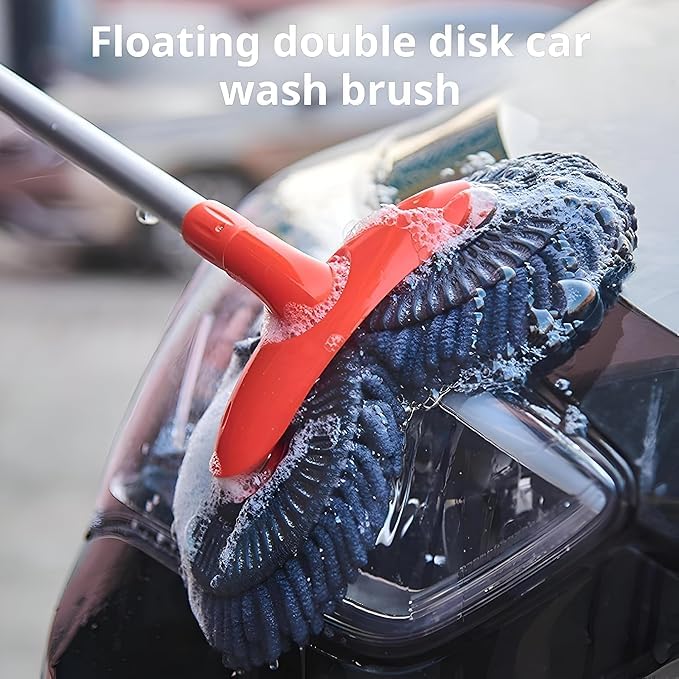 Generic - فرشاة تنظيف السيارة برؤوس دوارة مزدوجة للعجلات الخارجية والنوافذ الداخلية لا تسبب الخدوش مع مقبض من الستانلس ستيل قابل للتمدد، اداة غسيل السيارات خفيفة الوزن