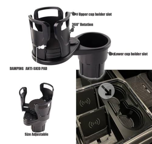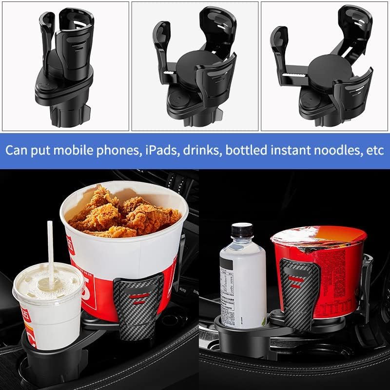 - ✔【Adjustable Top Cup Mouth Width】The top cup holder adapter can be adjusted to fit the cup body of 3 inch-5.9 inch diameter, fits most 20 ounce water bottles, increasing the cup holder can be more useable and meet more storage requirements. Store your cell phone, iPad, drinks, water cup, coffee or even quick made noodles for full use of space in the vehicle.