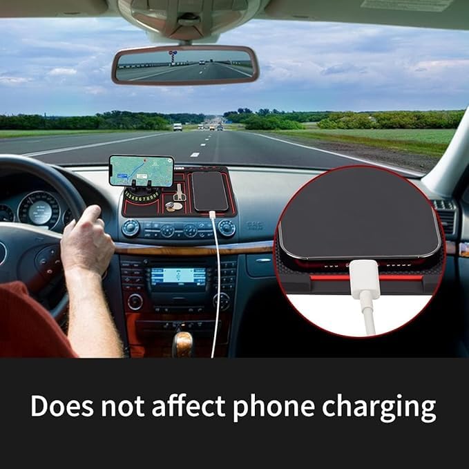 - سطح غير قابل للانزلاق: يأتي بسطح من ألياف الكربون الفاخر مع زخرفة حمراء، وتصميم ثابت لجمل الأجهزة مع منع خدش تابلوه السيارة.