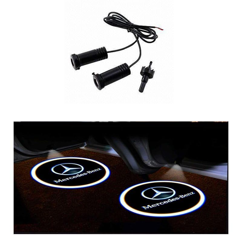 Generic - طقم لوجو شعار أضواء باب السيارة مزود ببطارية و لا يحتاج الي اسلاك- جهاز عرض بروجيكتور ليد شعار أضواء ترحيب - حفر داخل الباب متوافق مع مر@@سيدس