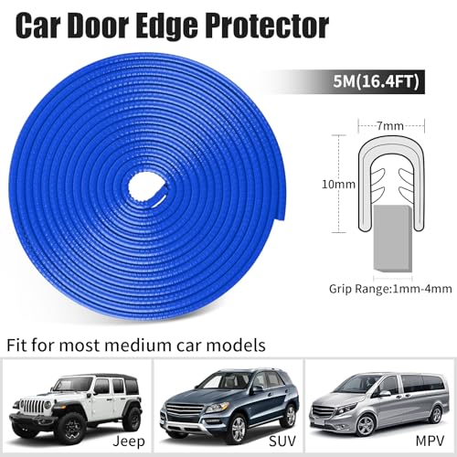 SEGNAYEN - Car Door Protectors Edge Guards, Blue Car Door Edge Protector, 5M U Shape Rubber Seal Trim Strip for Most Car Protection