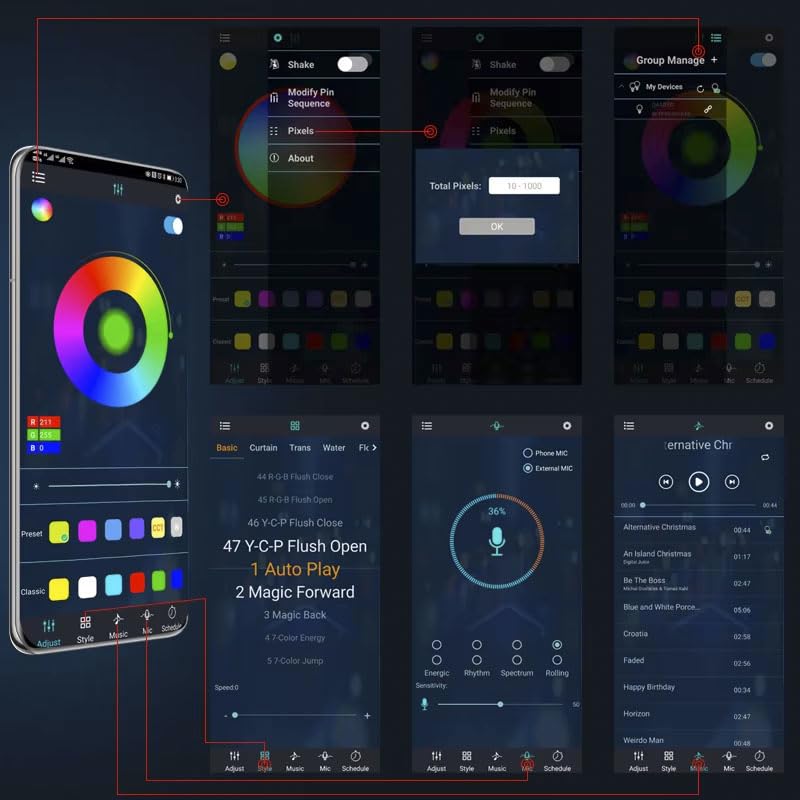 - Bluetooth Connectivity: Effortlessly control the lights via a user-friendly mobile application allowing you to customise colours and modes