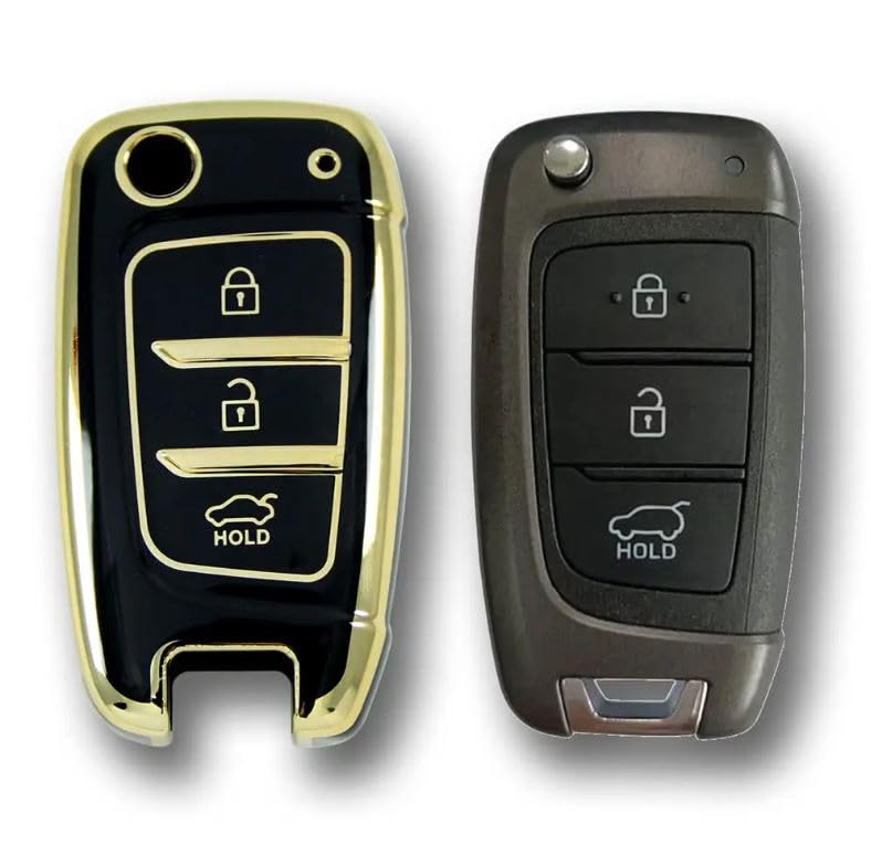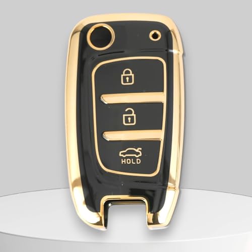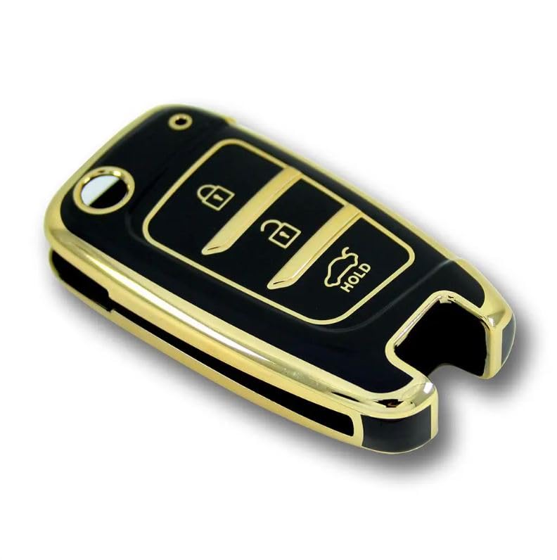 Generic - Car Key Cover Compatible with Many Cars TPU Black and Gold