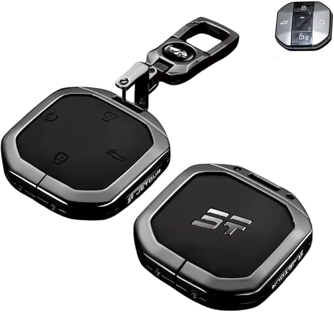 Generic - Car Key Fob Cover Luxury Leather in Metal Compatible with Jetor T1-T2 2025-2026- Black Stylish Durable Protection Case Cover Anti Scratch Shockproof Fashion Design Keep Key High