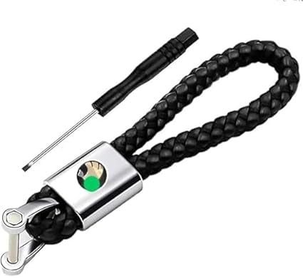 Generic - ميدالية وسلسلة مفاتيح سيارة جلد مضفرة مناسبة لمفاتيح السيارة والدراجات ومفاتيح العائلة - متوافقة مع سكو@@دا لون اسود