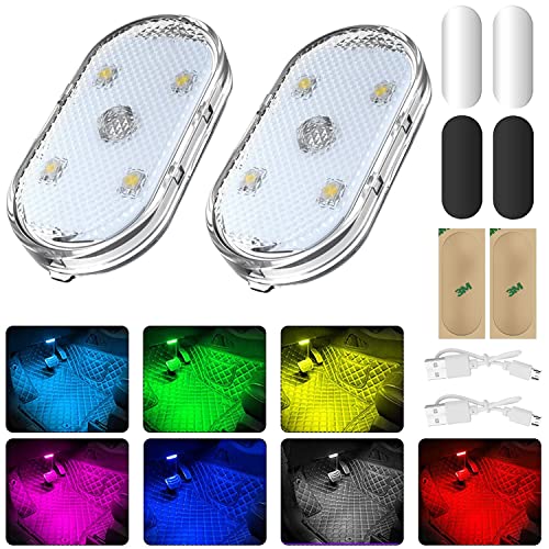 Sunshine smile - Car LED Interior Lighting, 2 Pieces RGB Car Interior Lighting, Multicoloured LED Atmosphere Light, LED Touch Light, Multicoloured Ambient Lighting, Rechargeable USB Car LED Neon