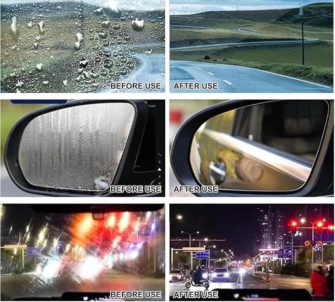 - Improve driving vision: effectively removes oil films and build-up that impede clear vision, especially during night driving and in the rain