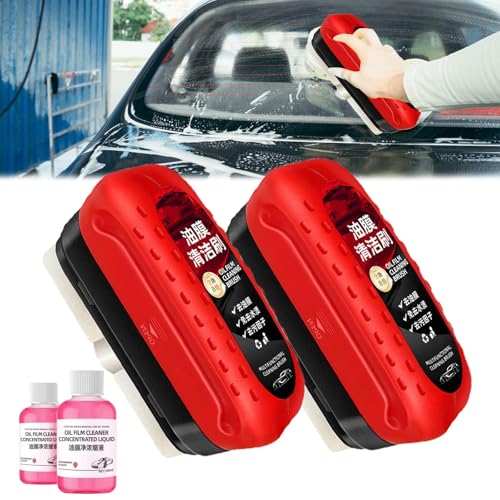 OSHIMA - Car Oil Film Cleaning Brush Glass Cleaning Board Glass Coating 2024 New Glass Coating for Windshield, Glass Oil Film Remover, Strong Front Windshield Remover, Car Glass Oil Film Cleaner (2PCS)