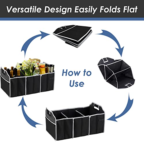 - RETRACTABLE & PERFECT MANAGER: This trunk organiser is originated in such a way to address all the deficiencies of existing trunk organizers. It is fully-collapsible and is designed to prevent your cargo from sliding and best for all type of vehicles like Sedan, Jeep, Van and all other with bigger or smaller trunk. Simply could be fold when not in use.