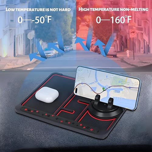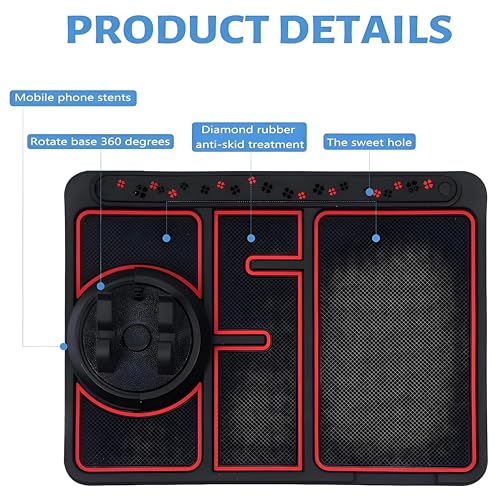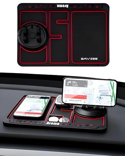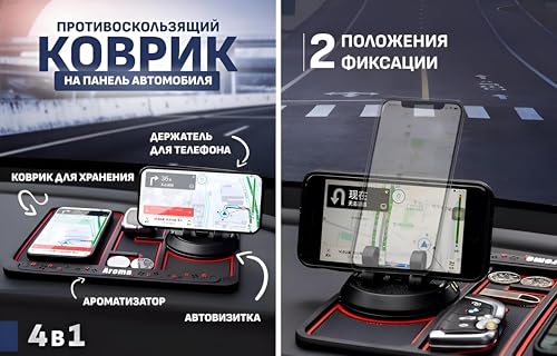 - 4-in-1 anti-slip car mat combines a non-slip pad with a parking-number plate, a universal 360° rotating phone holder, and a fragrance diffuser pad, delivering multiple functions in one simple setup.