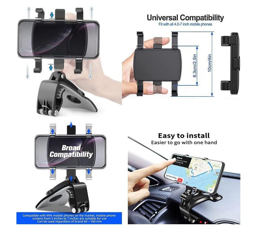 Generic - حامل هاتف للسيارة يثبت على لوحة العدادات بدوران 360 درجة، حامل موبايل بمشبك للسيارة 3 في 1 متعدد الوظائف مناسب للهواتف الذكية - من رنا ستور