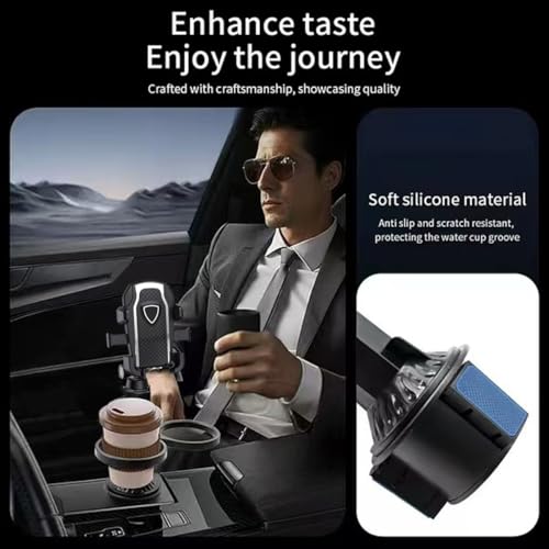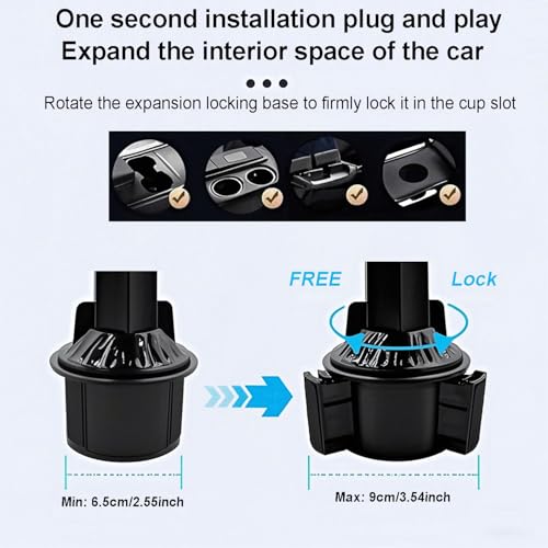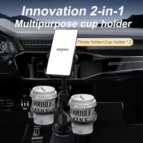 - 2 حامل أكواب: يتميز حامل هاتف السيارة بحاملين أكواب قابلين للتعديل، إذا كنت بحاجة إلى 1 فقط، اضبطه على حامل أكواب واحد فقط. من الأسهل تكييف الزجاجات أو الأكواب ذات العلامات التجارية الشهيرة من 18 إلى 40 اونصة. مريحة لحمل الماء والقهوة والشاي وما إلى ذلك.