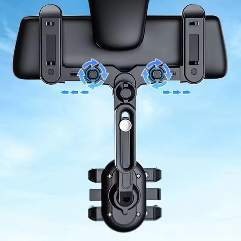 - 🔒 قبضة آمنة وثابتة: نظام تثبيت رباعي النقاط يُربط بإحكام بمرآة الرؤية الخلفية، يمنع الاهتزاز ويوفر ثباتًا ممتازًا للهاتف.