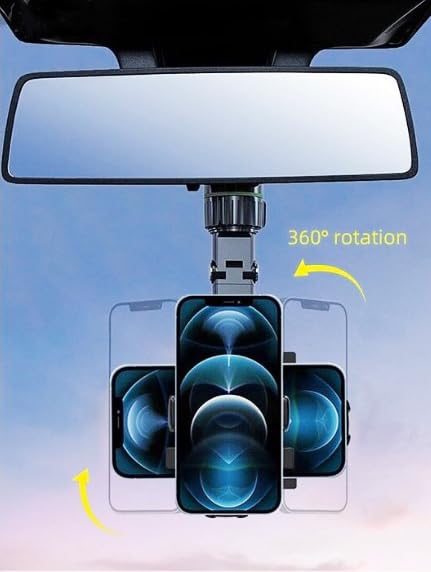 Generic - Car Rearview Mirror Phone Holder 360 Degree Rotation Multifunctional Universal Car Phone Holder for Home Office (Grey Code:9602) - KaberMisr 2020