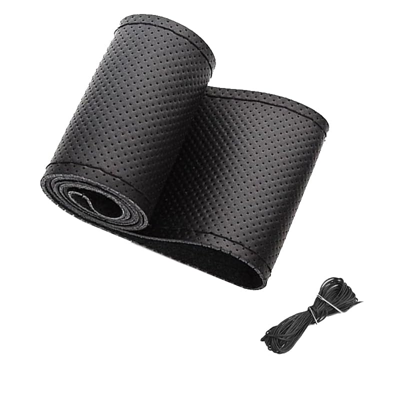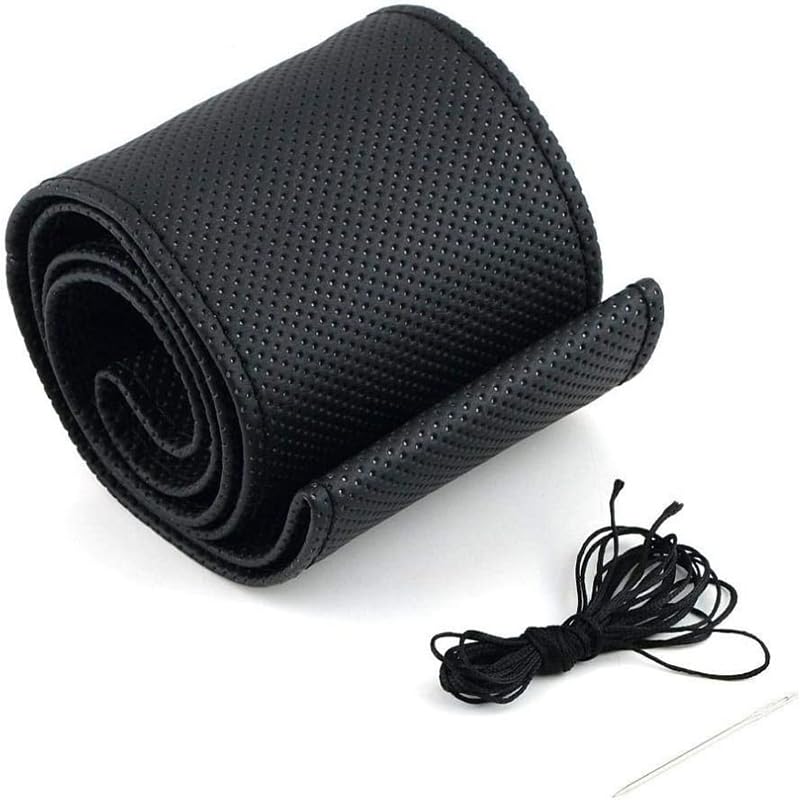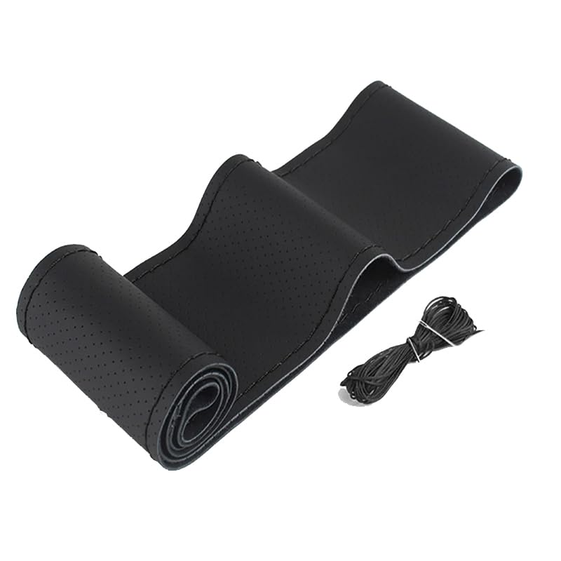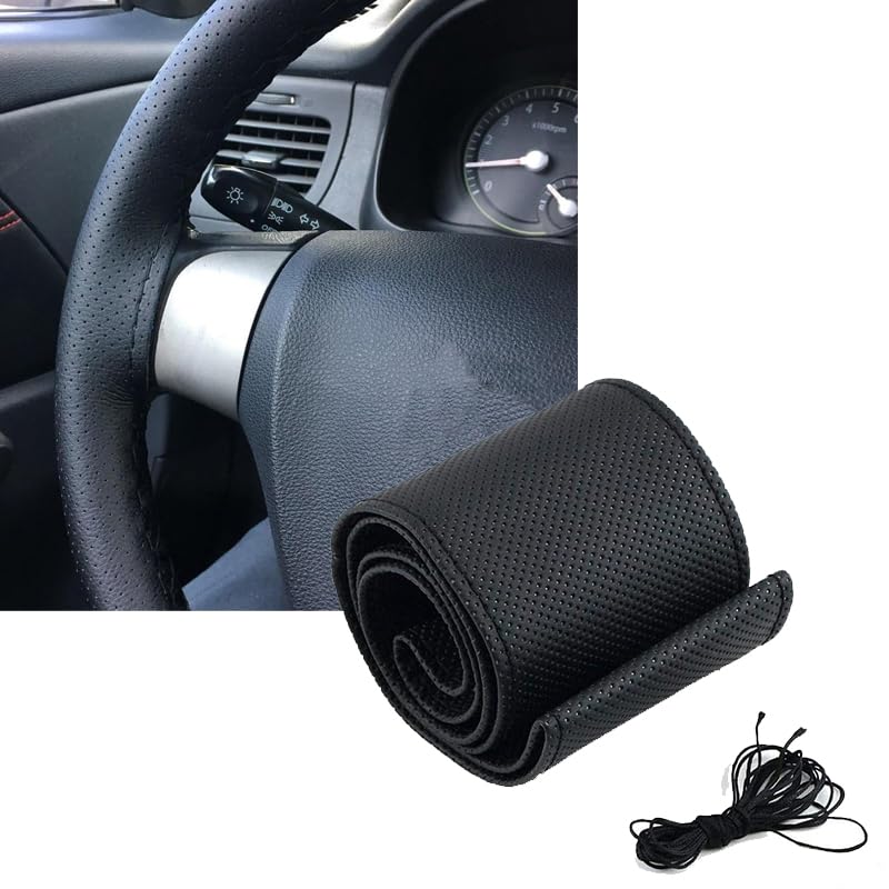Generic - غطاء طارة دركسيون السيارة غطاء جلد مخيط مضاد للانزلاق ومزود بمسامات للتهوية ناعم ومريح لجميع السيارات - (خيط أسود) - كابر مصر 2020