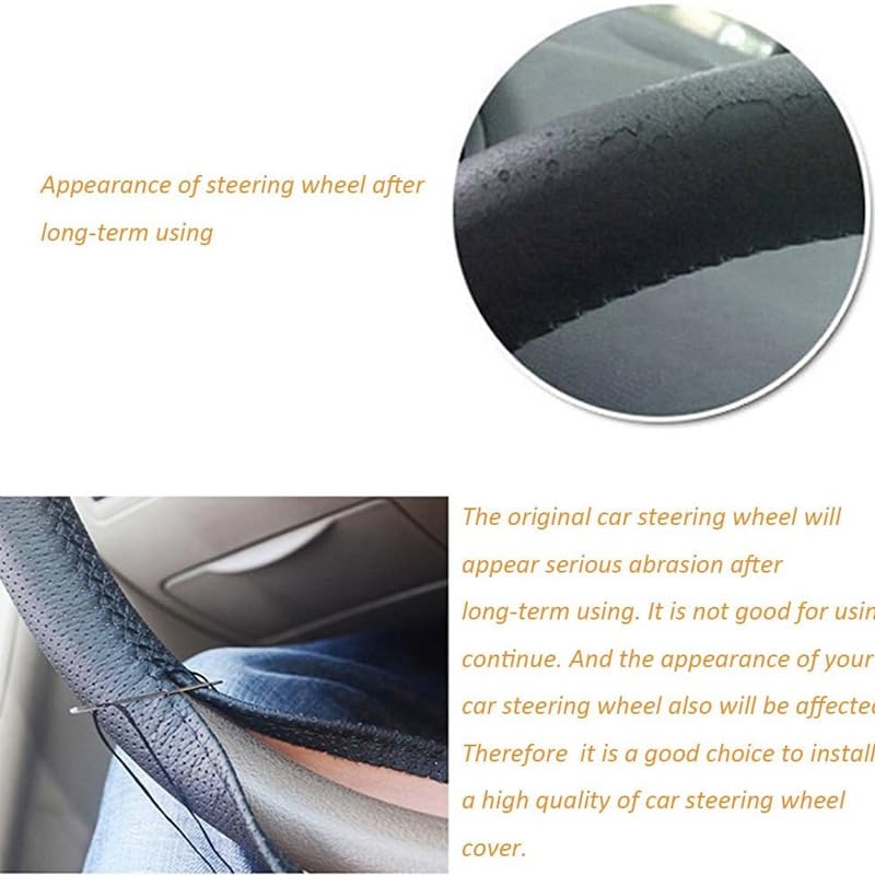 - ✅ جدد طارة دركسيون التوجيه الخاص بك - قم بتدوير طارة دركسيون الخاصة بك باستخدام غطاء طارة دركسيون المصنوع من الجلد المصنوع من الألياف الدقيقة مقاس 37-38 سم. يبدو مثل المصنع، مما يعطي مظهرًا أنيقًا وعصريًا.