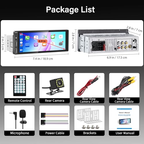 REAKOSOUND - راديو سيارة ستيريو بلوتوث بمدخل رقمي واحد بشاشة لمس 6.9 بوصة مع ابل كاربلاي واندرويد اوتو وميرور لينك وكاميرا احتياطية وميكروفون وRDS/AM/FM/USB/EQ