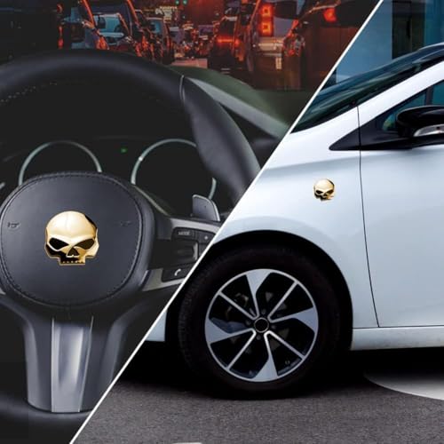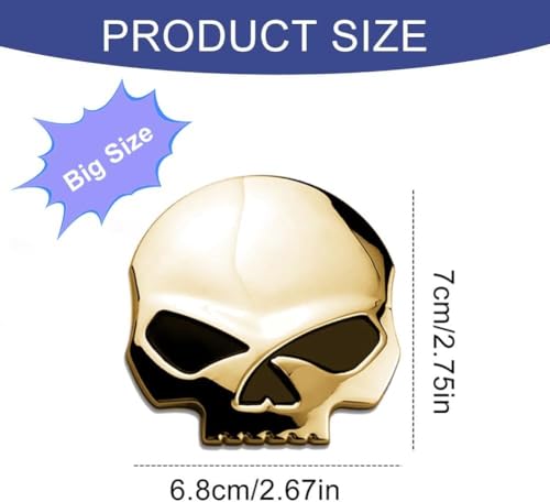 - ملصق سيارة بديل العلامة القديمة والتالفة او المفقودة لصق ثلاثي الأبعاد بتصميم جمجمة معدن للسيارات مقاس 7 × 7 سم، ذهبي للصندوق الخلفي للسيارة، والموتوسيكلات والشاحنات (1 قطعة)