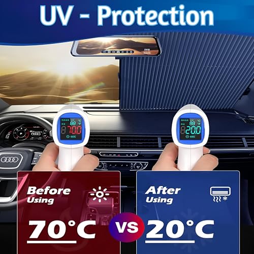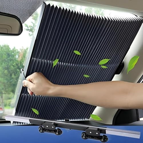Generic - Car Sun Shade - Retractable Windshield Reflective Sunshade Provides 99% UV Protection and Made of Four Layers of High Density Material, Including Aluminum Foil