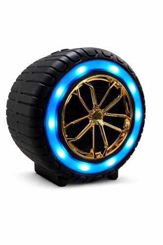 Generic - Car Tire Bluetooth Speaker with Blue LED Light and Gold Wheel Design