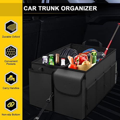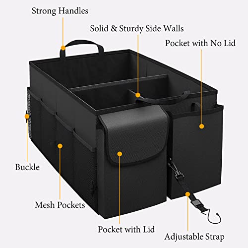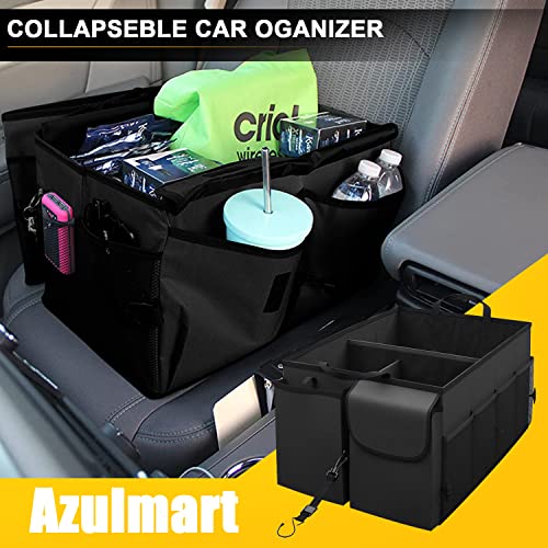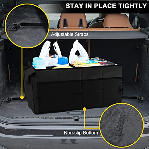 Azulmart - Car Trunk Organizer Portable Cargo Storage Box Collapsible Auto Container Bag Foldable Organizers with 3 Compartments Adjustable Straps Non-slip Bottom for SUV Van Vehicle Camping Picnic(Black)
