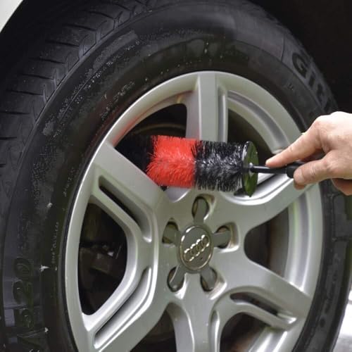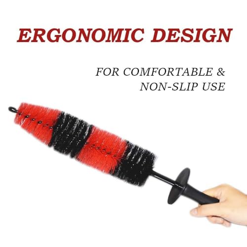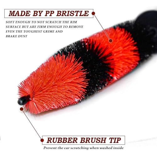 Generic - فرشاة حافة عجلة السيارة، تصميم مريح بمقبض طويل، شعيرات ناعمة من البولي بروبيلين مع طرف مطاطي، احمر واسود للتفاصيل والتنظيف