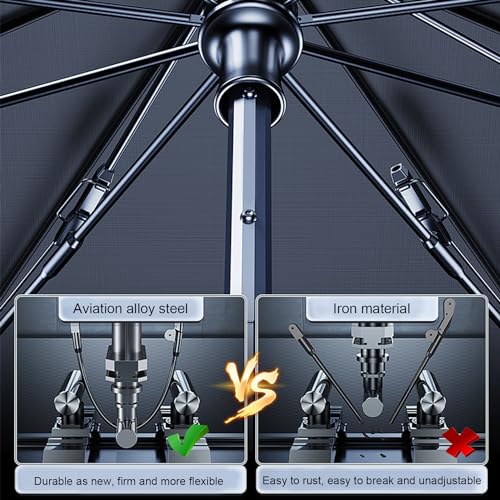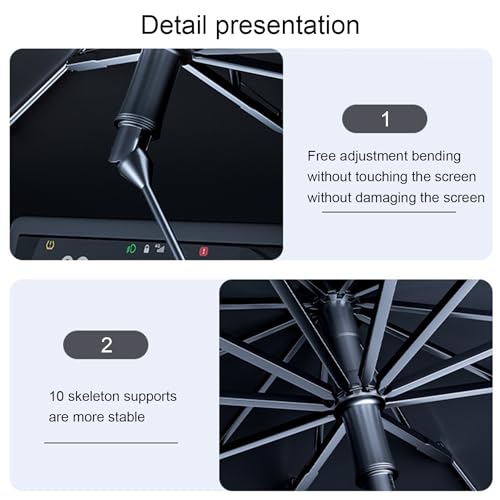 - [تصميم مفصل] يمكن طي مقبض المظلة وتدويره 360 درجة، مما لا يؤثر على الأشخاص الذين يجلسون على السيارة بعد الفتح. مقبض المظلة مصنفر لتوفير المزيد من الثبات ومنع الانزلاق بفعالية. مجهزة بـ 10 إطارات من الصلب، والتي يمكن أن تدعم سطح المظلة بشكل أفضل ولا تنحني، ويمكن أن تدعم كل زاوية ميتة من الزجاج الأمامي.