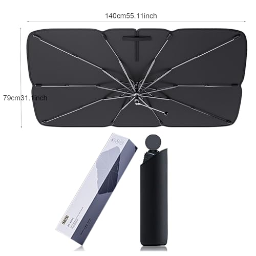 LIVLOV - شماسة لزجاج مقدمة السيارة قابلة للطي مصنوعة من فينيل سميك معزول يحافظ على برودة سيارتك (1.4 متر ×80 سم)