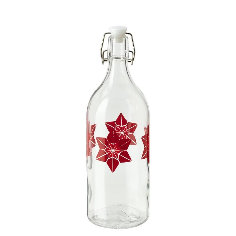 Generic - قنينة مع سدادة, زجاج/نقش زهور أحمر,1 ل