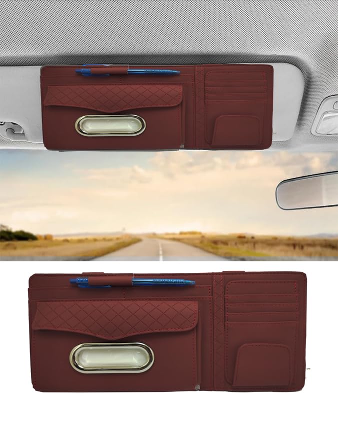 - Card Organizer & Tissue Holder & Glasses Holder,Pen Holder,Card Holder,Visa & Other,7 Pockets,Multi-Function Car Organizer,Car Sunshade Hanger,Pen Attachment & Tissue Case