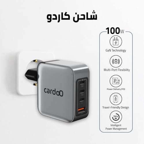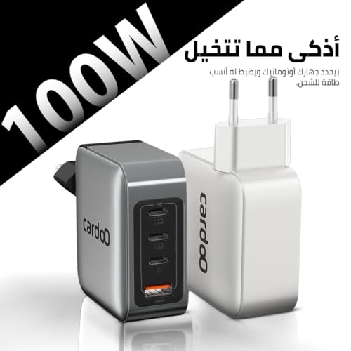 CardoO - cardoO GaN Charger 100W – Triple USB-C & USB-A GaN Fast Charger – High-Power Laptop & Gaming Adapter – Ultra-Fast Multi-Port Charging – Safe & Travel-Ready – For Phones, Tablets & Laptops – Black
