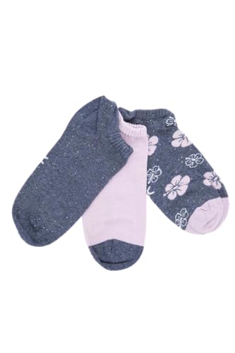 CARINA - Carina Cotton Elastic-Trim Ankle Socks for Women - Set of 3 - Navy and Pink