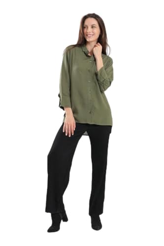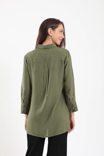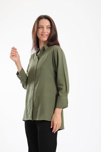 CARINA - قميص كلاسيكي بلون سادة للنساء من كارينا، سمول، زيتي