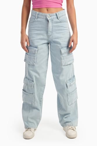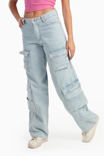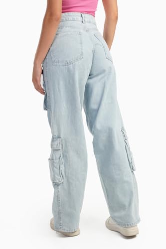 CARINA - كارينا بنطلون جينز كارجو للنساء بلون ازرق فاتح