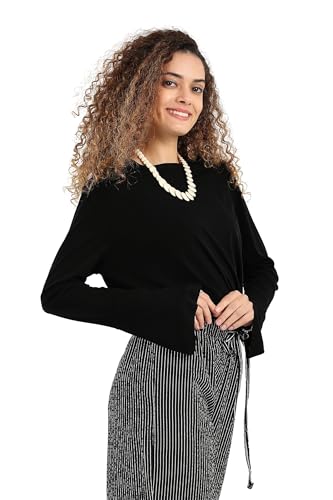 CARINA - CARINA Womens Black Blouse with Bell Sleeves Modern