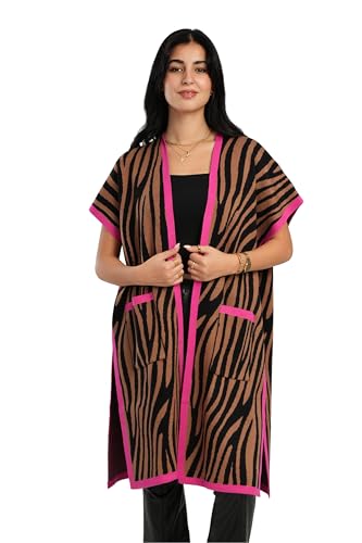 CARINA - CARINA Womens Zebra Print Wool Vest Fleece Vest