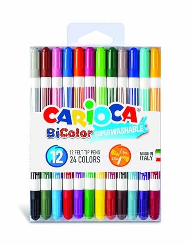Carioca - قلم باي كولور 12 قلم - 24 لون مزدوج اللون بطرف لباد قابل للغسل 42265 من كاريوكا
