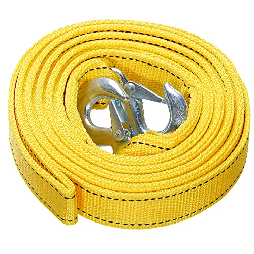 Carkio - Heavy Duty Tow Strap with Safety Hooks,3.8cmX 5m 5 Ton Polyester Tow Strap Rope,Traction Rope,Yellow