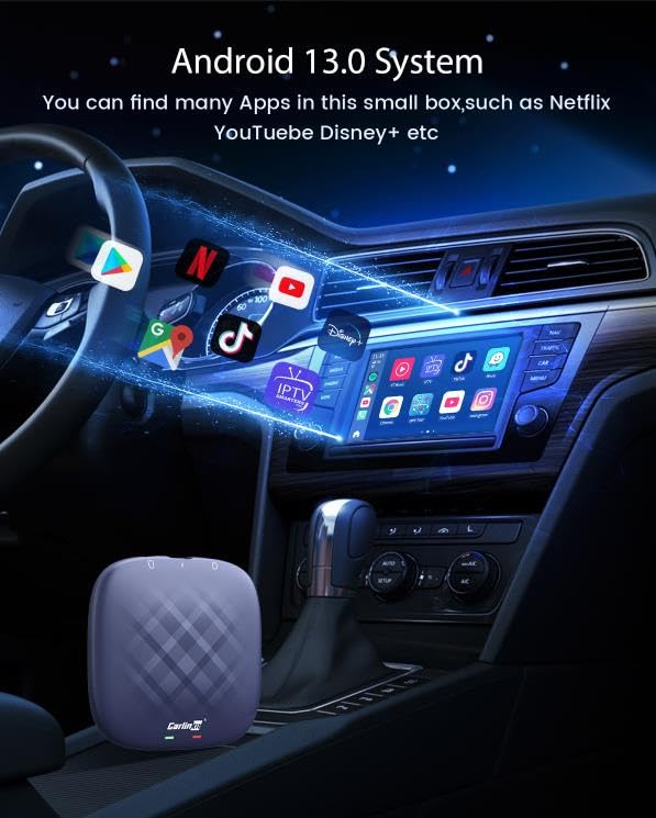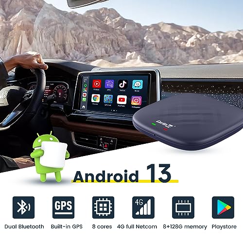 Carlinkit - ماجيك كار بلاي ايه اي بوكس أندرويد 13 للسيارة مع كاربلاي سلكي من كارلين نت، 8+128G، ترقية إنترنت، بلوتوث مزدوج، ثماني النواة، جي بي اس مدمج، يوتيوب، نتفليكس، هولو، اندرويد اوتو وشريحة وبطاقة TF وغيره