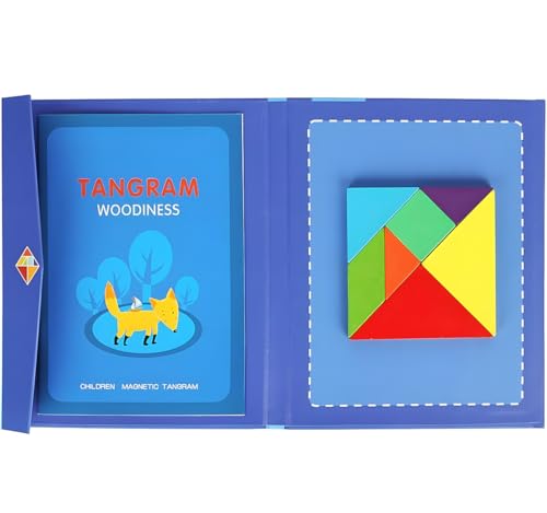 - 👩👩♀【Target】The set consists of seven flat shapes that come together to form figures and stick them into the included magnetic notebook. The goal of the puzzle is to form a specific figure using the seven pieces that cannot overlap. The pieces are simple and colorful. Different methods can be used to construct the image patterns where difficulty goes from easy to difficult. The game is really fun and educational to inspire and exercise children's intelligence.