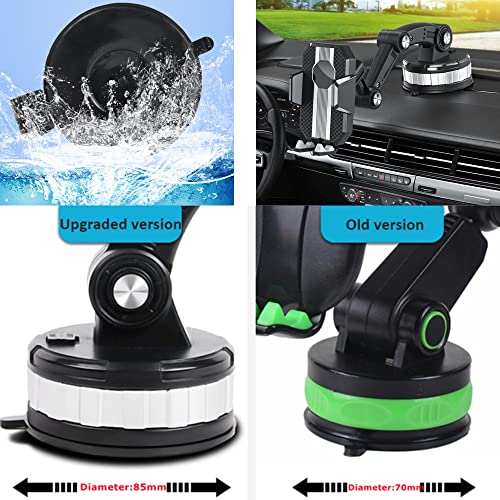 - 【Enlarged Width, Super Suction Cup】The latest enhanced car iPhone mount for cars passed the strict-grade sturdiness test. A strong suction cup securely locks on your windshield or dashboard to keep your smartphone safe and sound while you take calls and view navigation instructions, which is very convenient and will not disturb you.