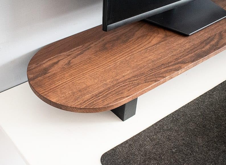 carpentray - carpenterray Wooden Computer Long Monitor Round Shaped Stand, Monitor Riser Desk Shelf Desktop Legs Stand TV Laptop Riser with Keyboard Storage Desk (Single Shelf)
