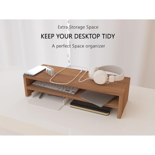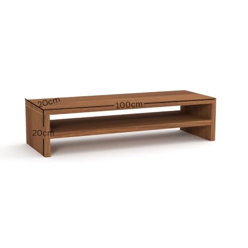 carpentray - حامل شاشة كاربن تراي، حامل شاشة كمبيوتر من الخشب البني الريفي والستيل (طول 100 سم)