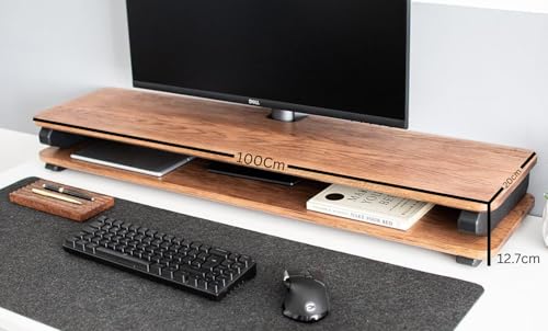 carpentray - حامل شاشة خشبي من كاربنتراي ستور مع منظم تخزين للمكتب فتحة اسلاك والطاولات والمكتب والمنزل والاستوديو وطاولة الدراسة | رافع 100 سم ارجل سوداء .