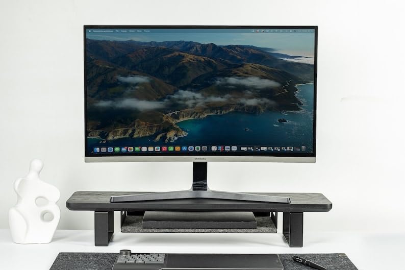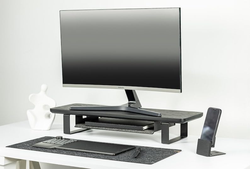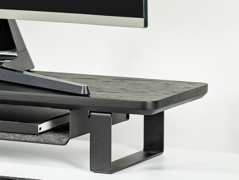 carpentray - Wooden Computer Long Monitor Stand, Monitor Riser Desk Shelf Desktop Legs Stand TV Laptop Riser with Keyboard Storage Desk (Full Black)